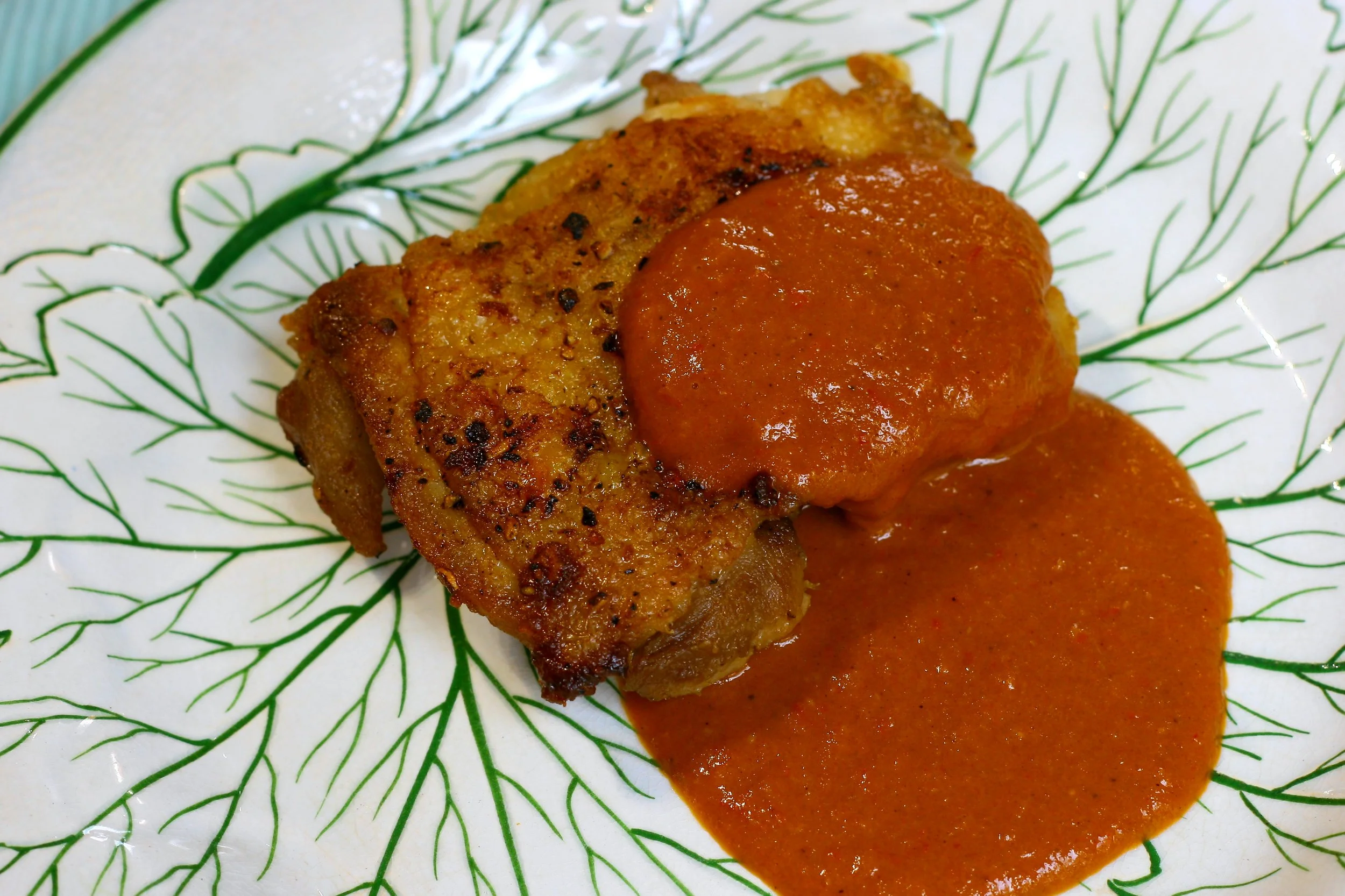 The fried sauce, but darker from arbol chillis and deglazing the sticky chicken goo from the pan.
