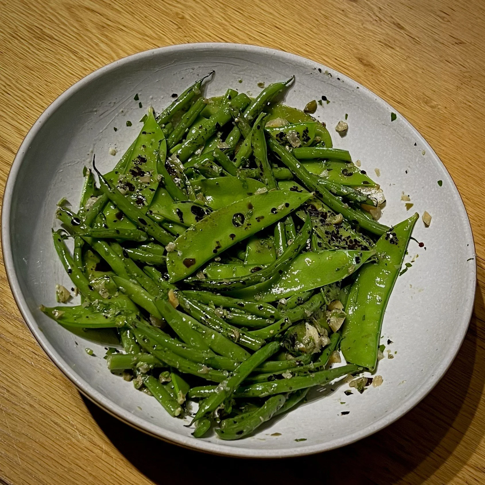 The recipe it owes most to is the Slow-Cooked Charred Green Beans on p49 of Flavour. This is brilliant in its own right, and only mildly fussy, and you should make it.